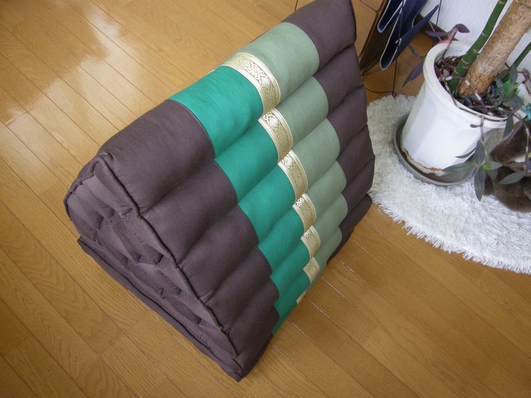 マット付き三角枕は、使わないときは、折りたたんでコンパクトに