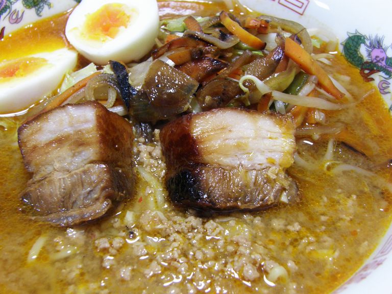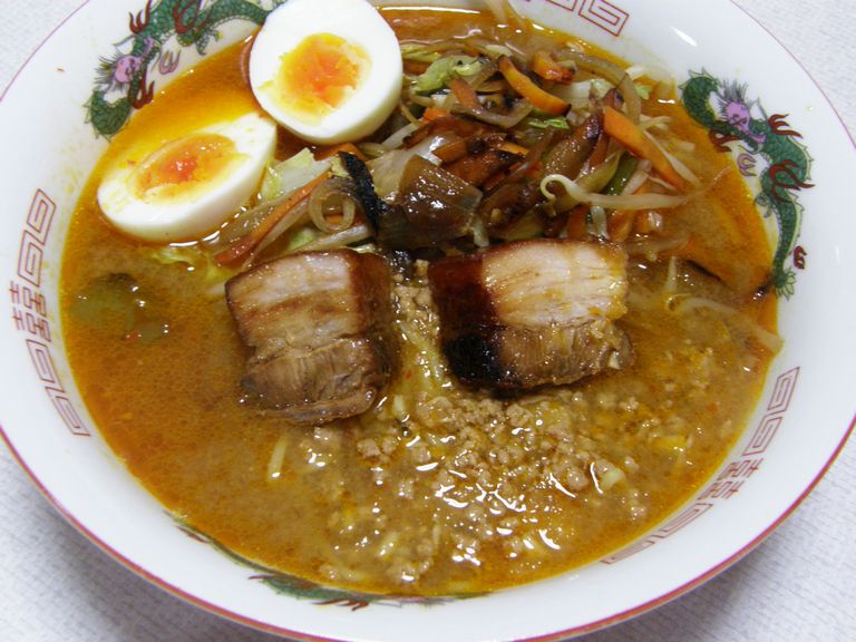 市販のラーメンのつゆの素を使わない、こくのあるちょっとピリ辛の味噌ラーメン。