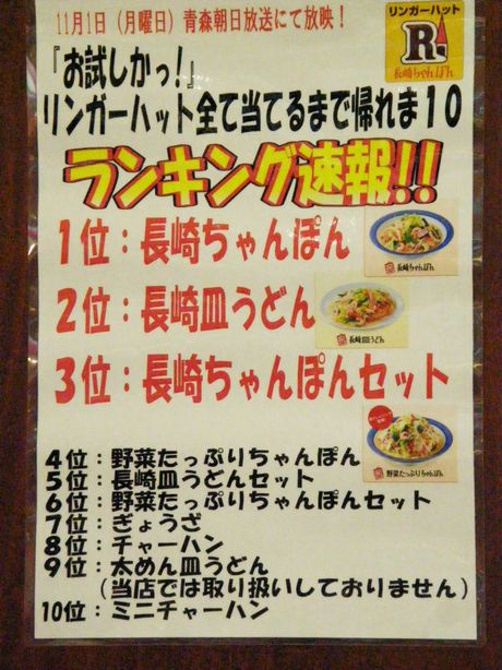 青森県になんと長崎ちゃんぽん「リンガーハット」が出来ましたね。