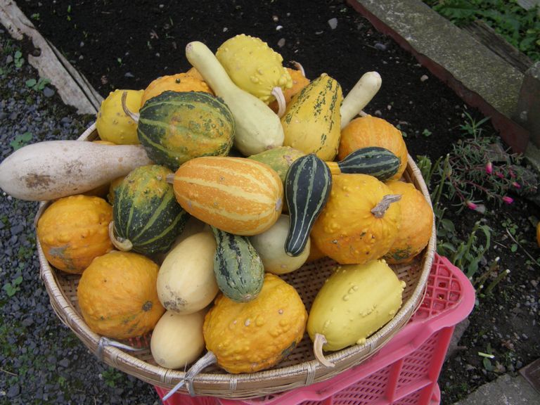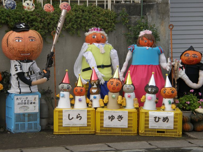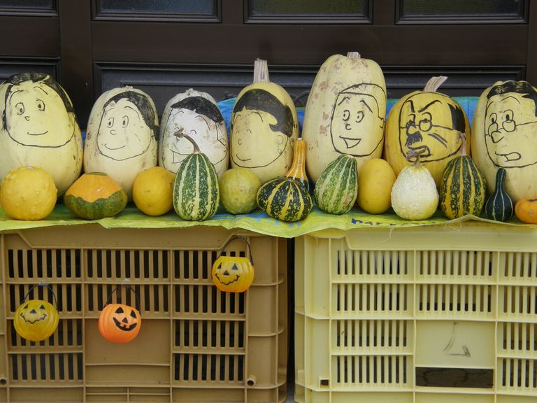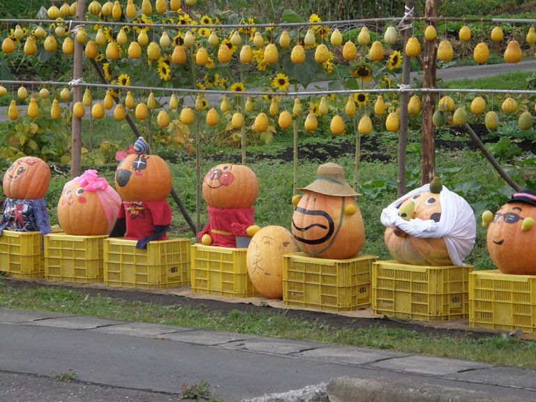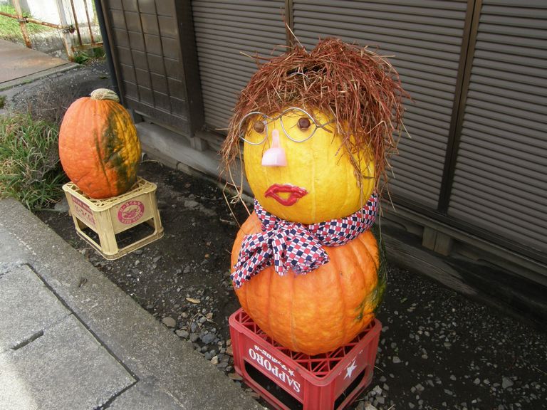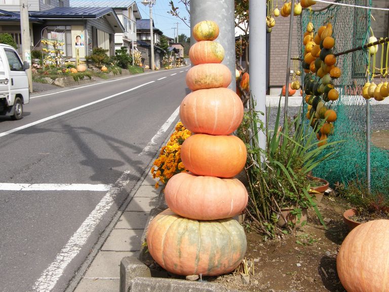 それぞれの家の道端にかぼちゃがいっぱい並んでいました。