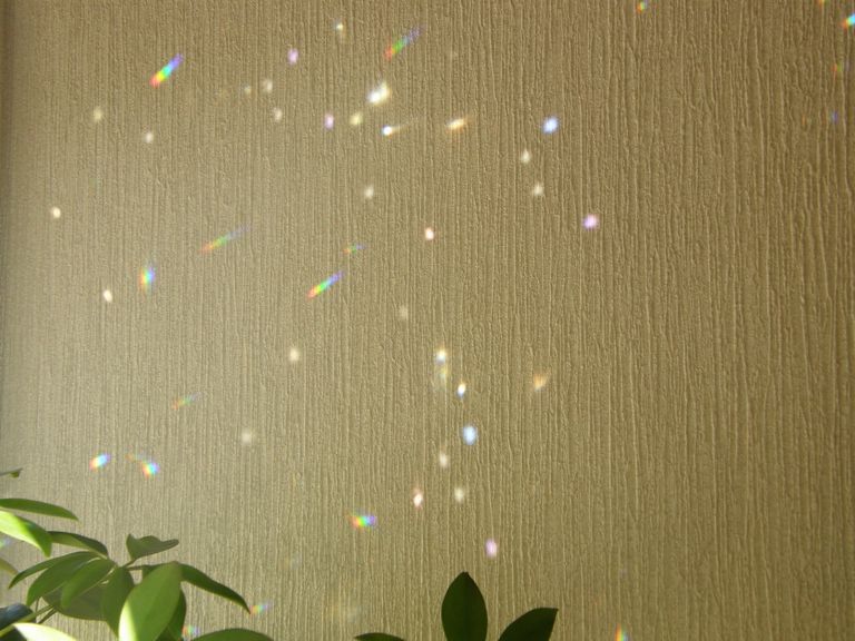 直接日光が当たると虹のシャワーがキラキラと広がります。